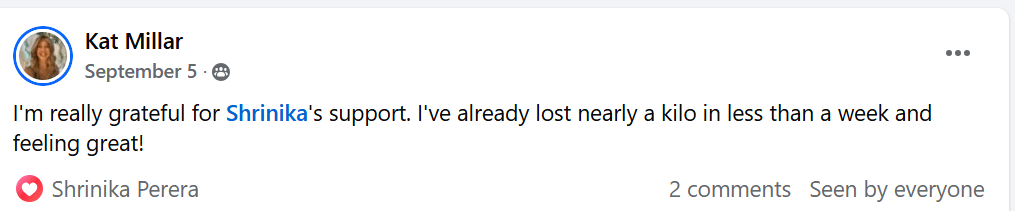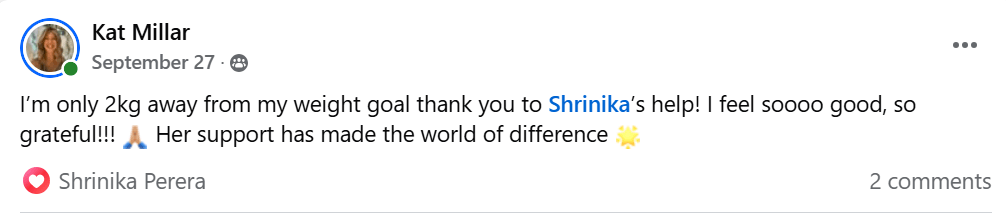 Kat shared her excitement and satisfaction with the results on Facebook, showing how achievable healthy weight loss can be with the right guidance and support.